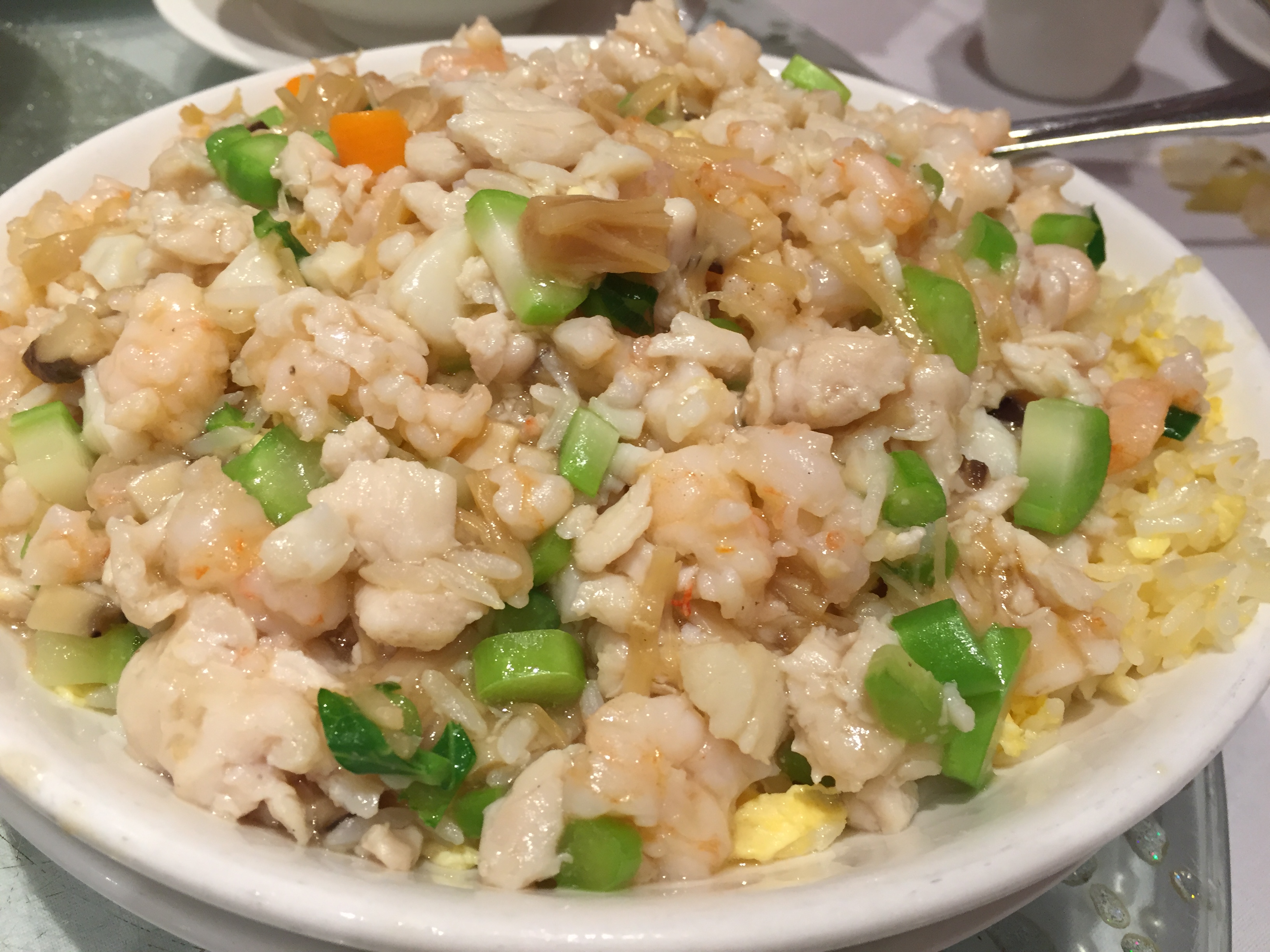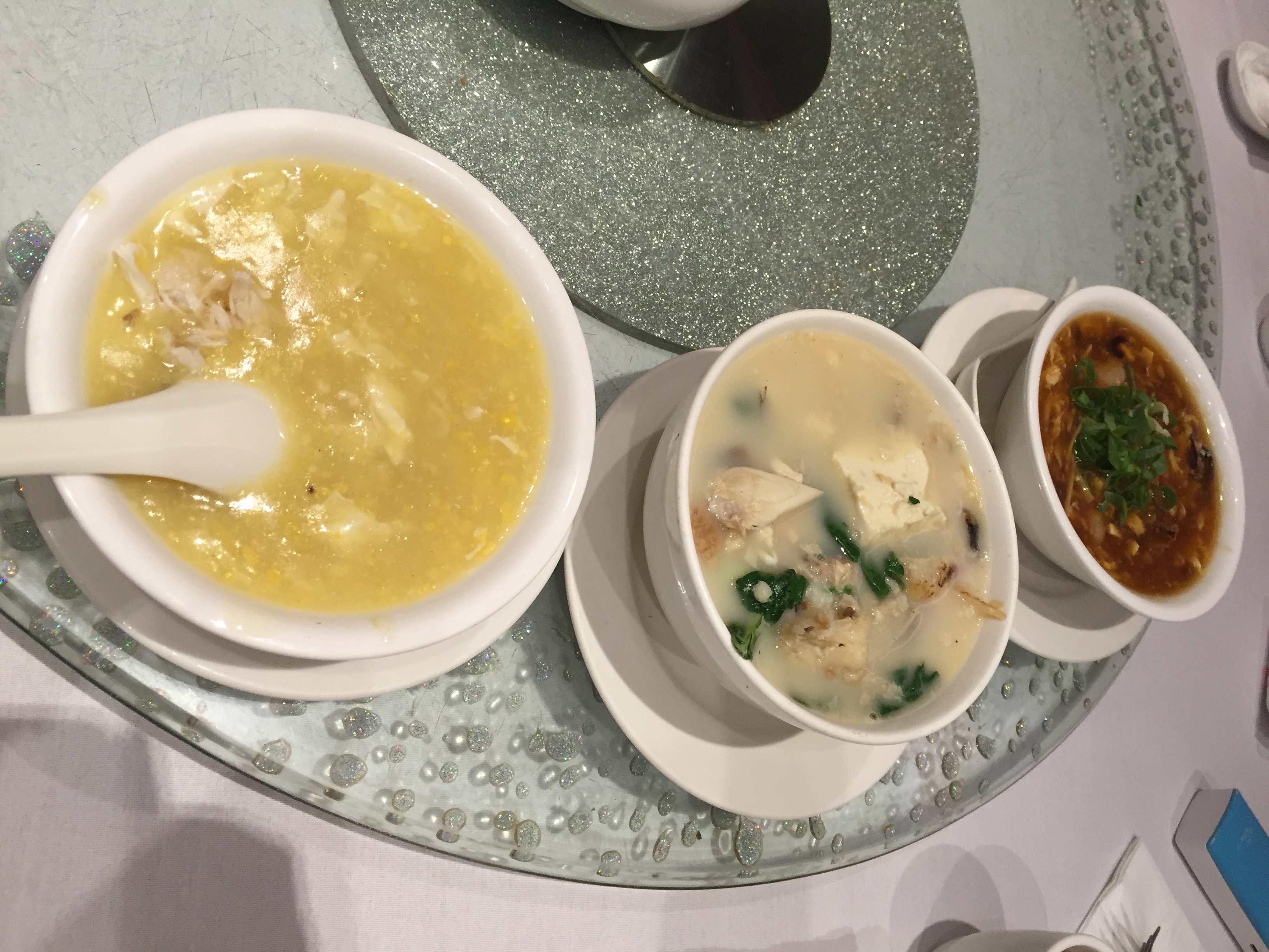Food for the day: Soups (hot and sour, fish head, creamy corn); XO pippies with vermicelli, fried duck in cranberry sauce; Fujian style fried rice